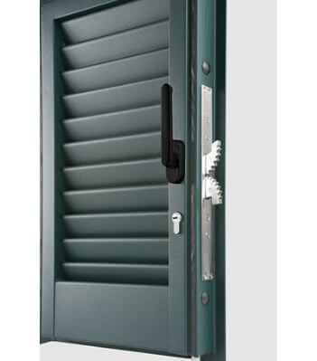 Persiane Finestre Blindate e Persiane Porte Blindate costruite in profili di Ferro Zincato con stecche ovaline, realizzabili su telaio perimetrale portante con cerniere saldate e rostri antistrappo