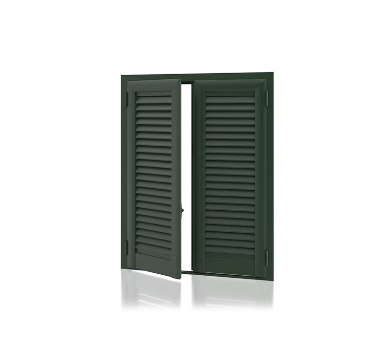 Persiane Finestre costruite in profili di Alluminio con stecche ovalina realizzate con bandelle e cardini a murare